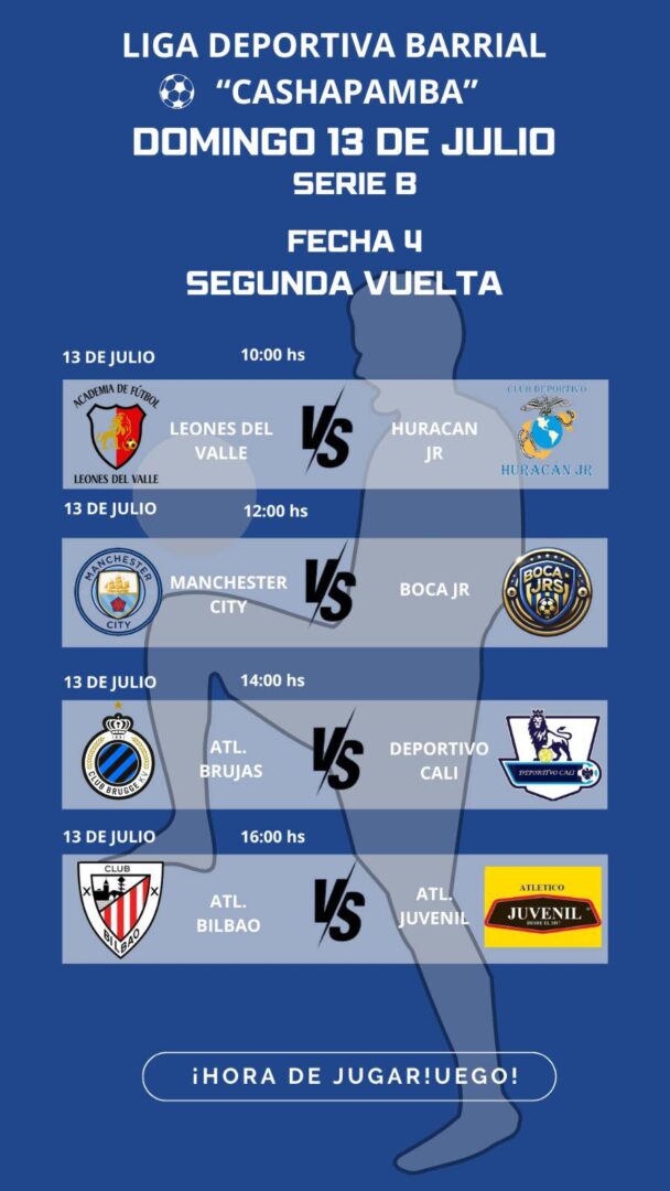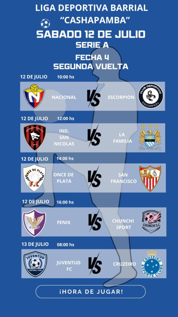 Este fin de semana se juega la Cuarta Fecha de la Segunda Vuelta en laLiga Deportiva Barrial Cashapamba